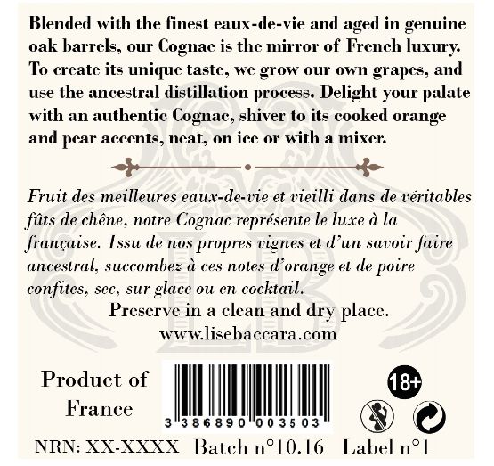 Maison artisanale de cognac et spiritueux, Lise Baccara incarne l’élégance et le savoir-faire français, en s’exportant vers des marchés internationaux exigeants.